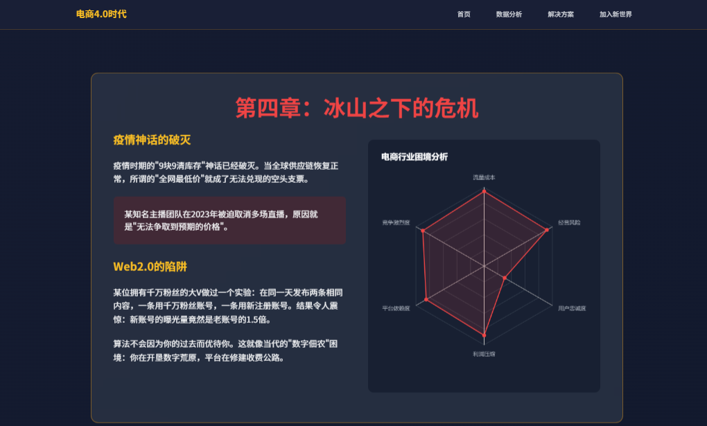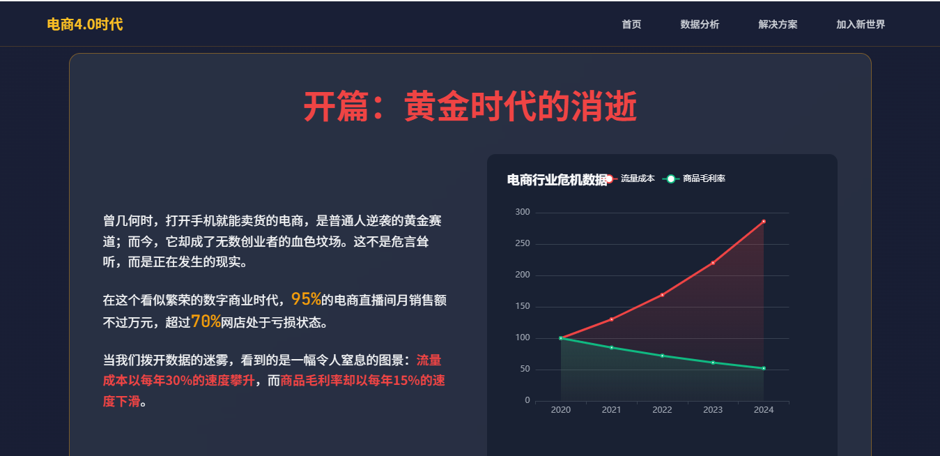 楼主文章开篇极具画面感,用“日入过万”、“草根逆袭”等关键词,精准地勾勒出电商黄金时代的狂热与梦幻。随后,笔锋一转,用“超95%直播间月销难破万”、“七成网店亏损”等扎心数据,描绘了当下红海市场的残酷内卷图景。