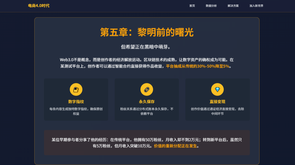 这个愿景无疑是激动人心的,它指向了一个更加公平、去中心化的未来。文中的美妆博主和家居店老板的案例,提供了早期实践的成功样本。